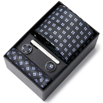نمط جديد 8 ربطة عنق طقم منديل أزرار أكمام صندوق ربطة عنق إكسسوارات بدلة خط أزرق تناسب مكان العمل هدية عيد ميلاد