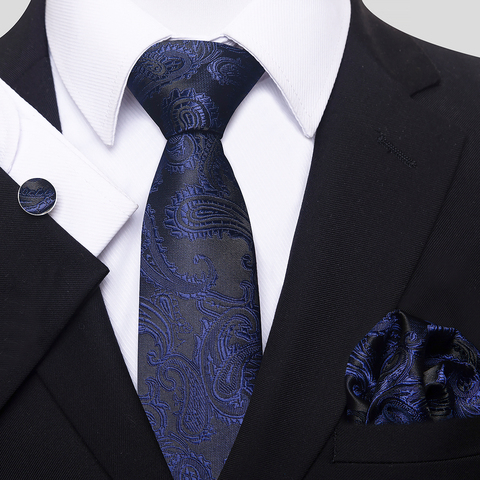 Offre Spéciale classique cravate poche carrés ensemble cravate pour hommes soie bleu Paisley costume accessoires cadeau de mariage