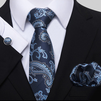 Scatola regalo cravatta da uomo in seta Paisley cravatte per uomo matrimonio stile Business Set cravatta blu