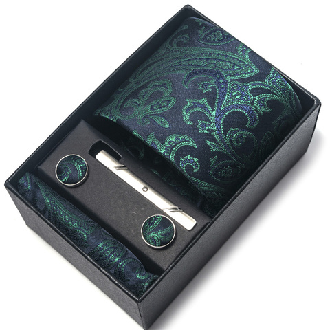 Da uomo verde/oro/rosso/nero cravatta e Set fazzoletto da taschino, vestito cravatta fazzoletto gemelli in scatola regalo cravatta Set