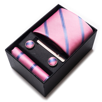 최고 학년 패션 7.5 cm 넥타이 손수건 커프스 단추 세트 넥타이 상자 세트 액세서리 스트라이프 핑크 맞는 공식 파티 생일 선물